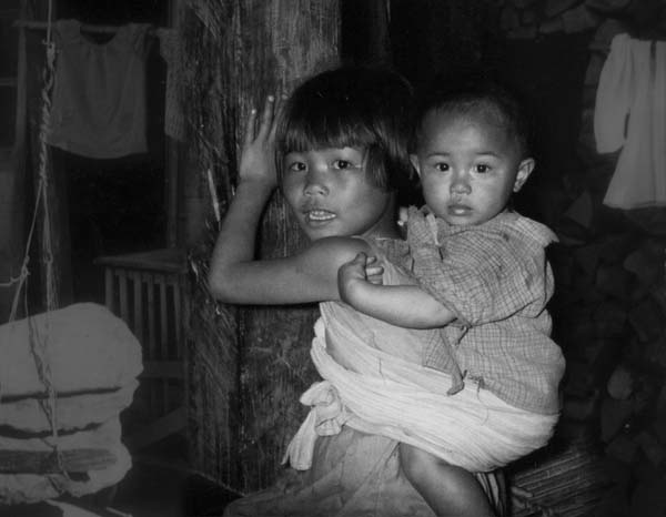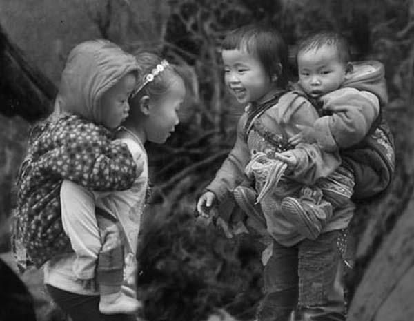 這麼多的孩子,父母親即使三頭六臂也無法照顧,更何況父親上工, 母親有時也必須上山砍草或種植樹苗等做些臨時工以貼補家庭開銷,整天不在家,孩子要由誰來照顧,這工作自然就落到未上學的四、五、六歲哥哥、姐姐身上,換尿布,洗尿布,餵飯無不熟練,每位兄姐還有一項絕活,那就是用長長的背巾將弟妹綁在背上,這樣可以一邊與玩伴遊戲,一邊可以照顧幼小的弟妹。這項工作到就學年齡可以稍微解除, 因就讀的學校遠在三、四十公里外的大元國小,不過每遇兩週放假三天的日子,照顧幼小弟妹的工作又得由年紀大的哥哥、姐姐負責。