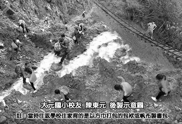 大元國小學校位在碎岩層上,容易碎裂、容易滑動,滑動崩塌的情況嚴重,每年學校操場周邊總會下陷數10公分,因此搬運石塊填補崩塌的操場成為每位同學常常要做的工作,老師的工作是將每位學生搬運的石塊堆砌起來,然後填以泥土,這項工作是無法停歇的,操場塌陷的速度與填補的速度相互競賽,大自然的力量始終是最後勝利者,填補只是減緩塌陷的速度而已。經師生合力搬石平地又增添了護籬後的操場,成了我們的快樂樂園,它陪伴我們度過一個個春夏秋冬,見證了我們快樂的成長!在此建立起互助合作的精神,增進對往後我們在社會上人際間的互動關係。